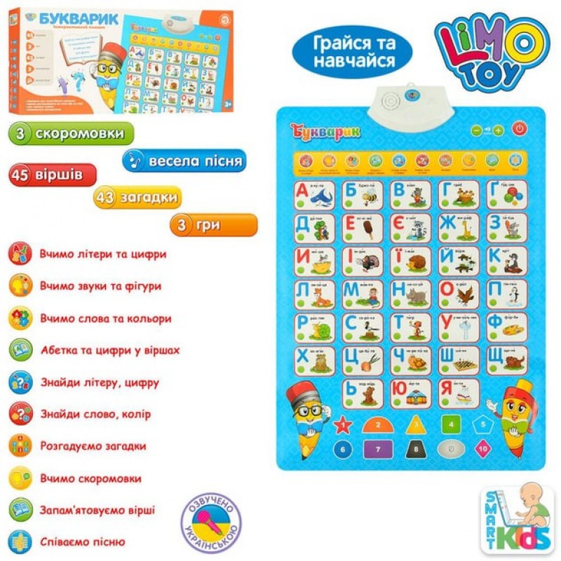 Такий цікавий і незвичайний плакат Limo Toy 7031-UA стане для дитини не тільки розважальною, а й іграшкою, що розвиває. Плакат допоможе дитині знати багато нової та корисної інформації. Гра з плакатом допоможе дитині розвивати уяву, уважність, ерудицію та покращить сприйняття звуків та кольорів.