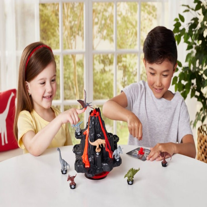 Jurassic World Volcano Explosion - це захоплююча гра, яка переносить дітей у захоплюючий світ динозаврів. У комплект входить тривимірна дошка для балансування у формі вулкана та вісім фігурок доісторичних рептилій.