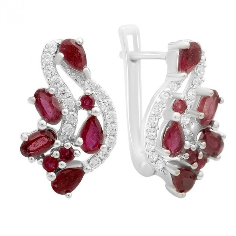 срібні сережки з натуральним рубіном 4.384ct